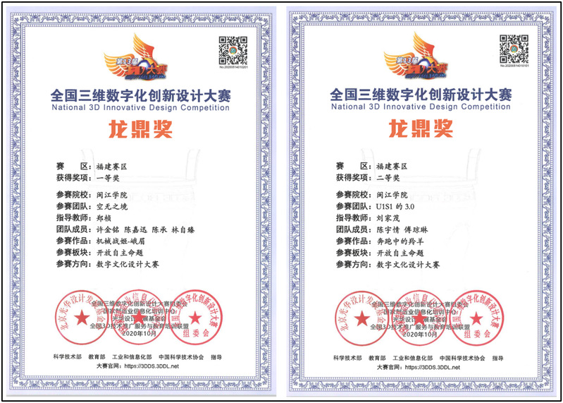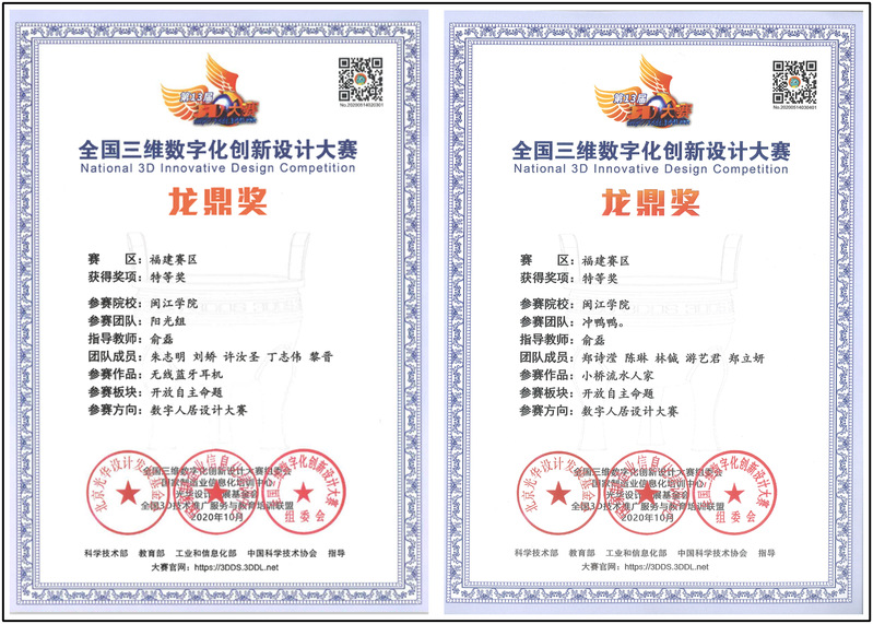本次大赛从2020年4月份正式报名至今,前后经历了长达七个月的筹备与各级别的选拔。此次物电学院3D协会承担无码中文字幕 的赛事组织工作,组织了113人参加了大赛,物电学院俞磊老师带领的学生队伍获得全国三维数字化创新设计大赛国赛一等奖1项,国赛三等奖1项,省赛特等奖2项。美术学院郑桢老师和刘家茂老师带领的学生队伍分别获得省赛一等奖、三等奖各1项。此次获奖人次和获奖等级均创下无码中文字幕 在该项赛事中的新高!无码中文字幕 获得2020全国三维数字化创新设计大赛优秀组织奖。