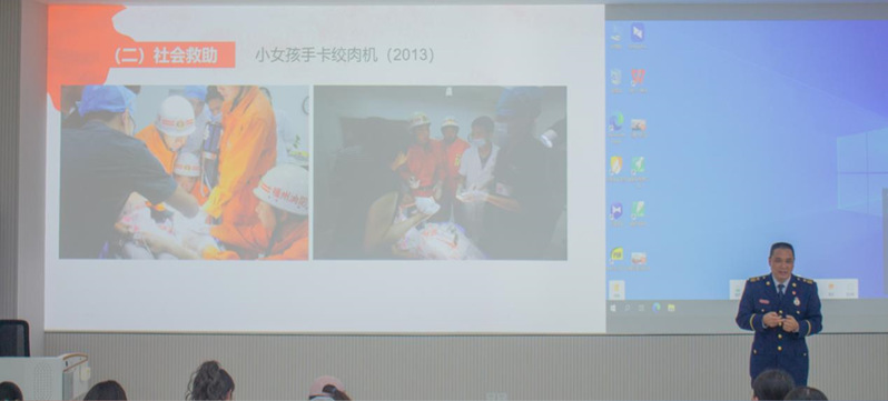 涂教官是福建消防史上年龄最大、工作时间最长的基层消防员,年过四旬仍然时刻保持24小时应急状态,始终坚守在消防救援一线,他图文并茂的分享了自己亲身参与处置的“5·12”汶川大地震、“4·6”古雷PX爆炸事故、泉州“3·7”佳欣酒店坍塌、抗击“龙王”台风等多起急难险重的抢险救援任务。