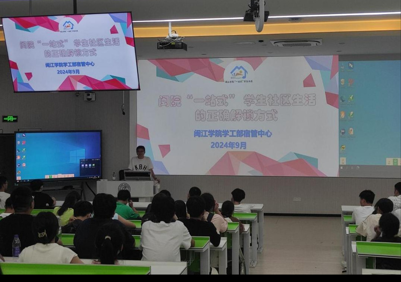 讲座中,韩冰雪老师围绕组织架构、宿舍生活规范、办事指南等五个方面,向新生介绍了闽院“一站式”学生社区生活的正确解锁方式。他强调文明宿舍对个人发展和校园和谐的重要性,并详细解读了宿舍卫生、和谐人际关系、遵守规章制度和营造学习氛围等标准,给同学们的校园生活带来了新的思考和方向。