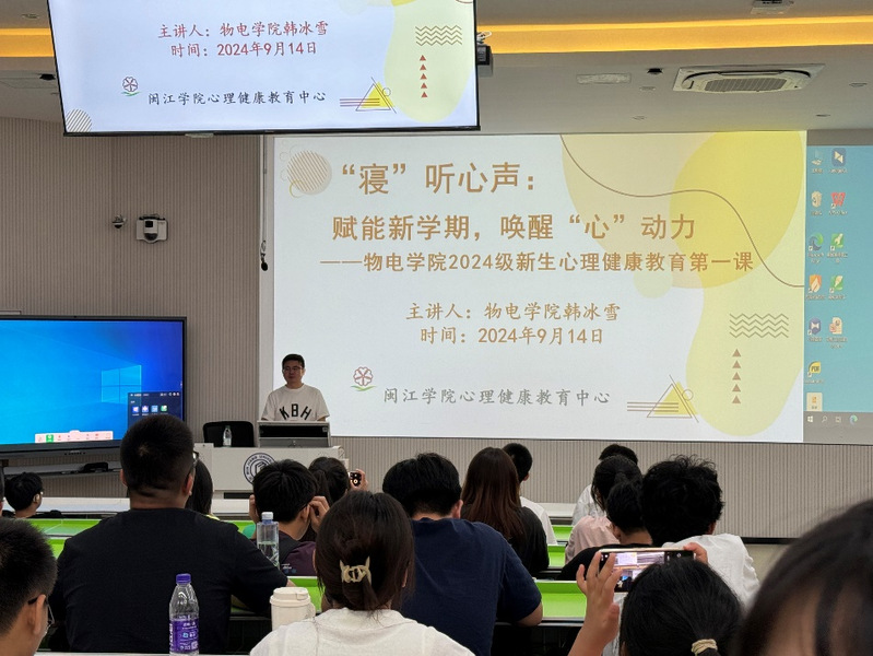 韩冰雪老师以《赋能新学期,唤醒“心”动力》为题开展了学院2024级新生心理健康教育第一课,他提醒新生应警惕自满和自卑情绪,建议通过线上智能服务平台或线下心理咨询渠道获得帮助。最后,他希望新生们热爱生活,珍视生命,自尊自信,理性平和,乐观向上。