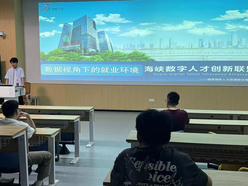 10月18日下午,物电学院举办就业政策宣讲活动。福建海峡人力资源股份有限公司IT孵化中心商务经理及海峡数字人才创新联盟项目经理林瑞祥主讲。