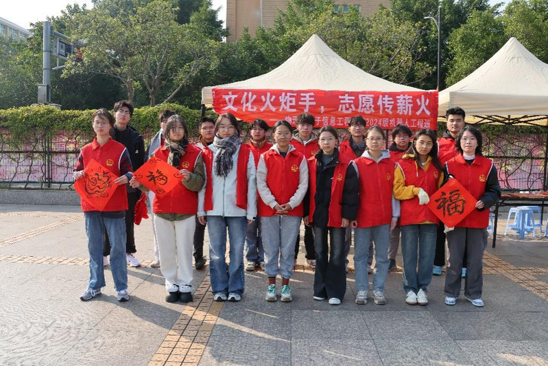 为响应第39个“国际志愿者日”的号召,弘扬“奉献、友爱、互助、进步”的志愿服务精神,12月22日,物电学院2024级机器人工程班团支部在致强操场举办了主题为“文化火炬手,志愿传薪火”的传统民俗文化志愿活动。活动内容涵盖画脸谱、剪纸、写春联三大环节,形式丰富,趣味盎然。