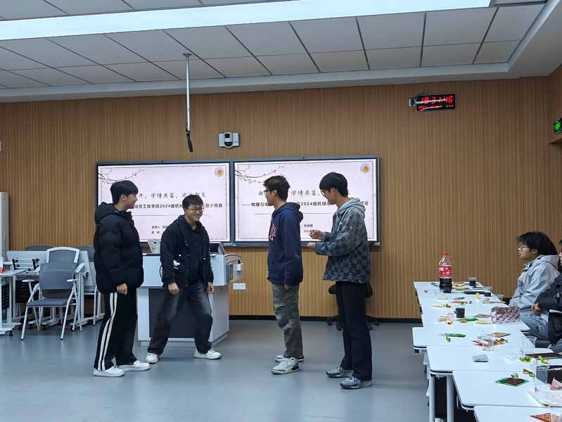 时光如梭,岁月如歌。当2024年的脚步渐行渐远,2025年的新篇章悄然开启。为总结入学以来的成长历程,缓解期末备考的压力,并为同学们送上元旦祝福, 12月26日,物电学院2024级机械电子工程班举办了以“新岁序开,学绩共鉴,迎战期末”为主题的迎元旦班会。此次班会总结过往,展望未来,2024级新生辅导员白洁玉应邀出席,全班同学热情参与,共享温馨时光。