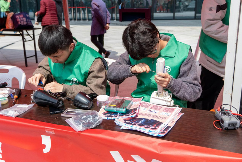 活动当天,志愿者们早早来到现场,准备好维修工具和备用器件,为社区居民提供家电维修服务。维修范围涵盖电风扇、电磁炉、电饭锅、电热水壶等小型家用电器。志愿者们分工明确,有的负责接待登记,有的专注维修工作,展现了扎实的专业技能和耐心细致的服务态度。