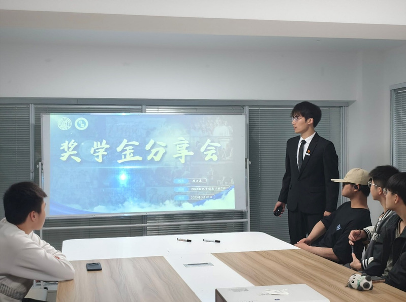 “2023-2024学年国家励志奖学金、2022-2024连续两学年校一综合等奖学金、2022-2024连续两学年文明养成奖学金”获得者周乃森解释了综测计算方法,分享了实验室和学生工作的心得,建议学生提前做好未来规划。