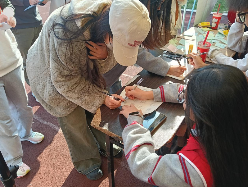 活动当天,志愿者们在致强田径场支起帐篷。同学们纷纷来到现场,领取集章小卡片,开启了一次别开生面的“环保游戏探险”。
