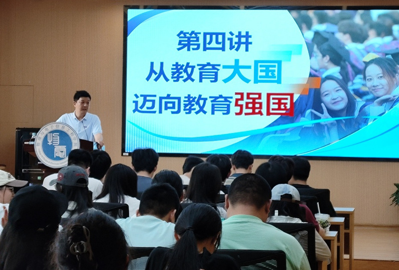 5月13日下午,物电学院党委书记洪晓林以“从教育大国迈向教育强国”为主题,面向2025届毕业生开展形势与政策课。