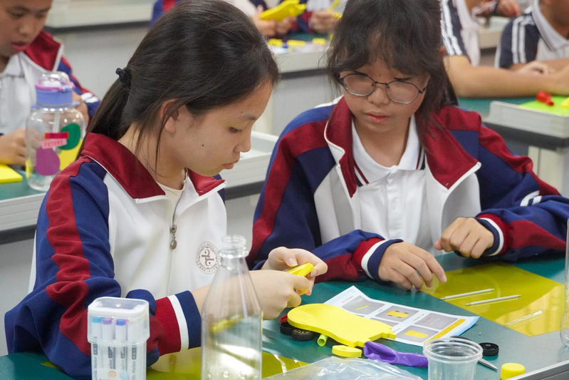 在水火箭制作环节中,宣讲员开展“精准教学”:从硬纸板尾翼的空气动力学剪裁,到PVC火箭头的流线型塑形,再到气压阀门的密封性调试,每个步骤都做到耐心指导。“老师,尾翼对称度会影响飞行稳定性吗?”“我们可以用三角板测量校准,就像火箭工程师校准助推器角度一样!”在思维碰撞与动手实践中,“星辰号”“逐梦号”等各具创意的水火箭陆续诞生。当搭载着航天梦想的水火箭再次升空时,现场爆发出热烈掌声与欢呼声。