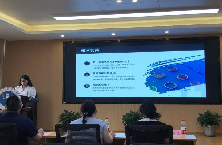 各团队根据抽签顺序依次上台,围绕项目进行精彩的汇报和答辩,通过PPT演讲的形式详细介绍项目背景、研究内容、实施方案和取得成果等,并回答评审老师的提问。