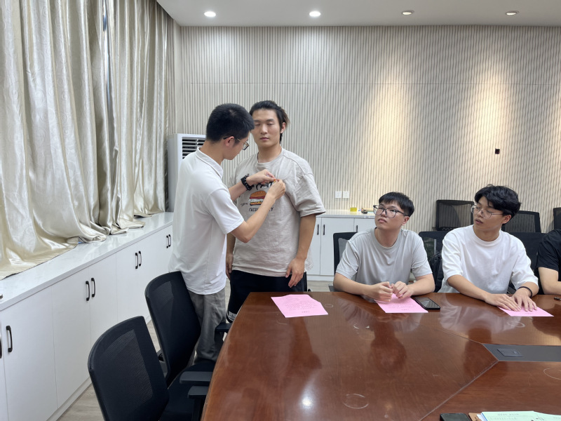 随后,学生第三党支部书记姚嘉杰为新党员佩戴党徽。陈嘉俊作为新入党的党员代表表态,表示将牢记党的宗旨,继续加强理论学习,用习近平新时代中国特色社会主义思想凝心铸魂,刻苦钻研专业知识,为将来服务社会、建设祖国打下坚实基础。