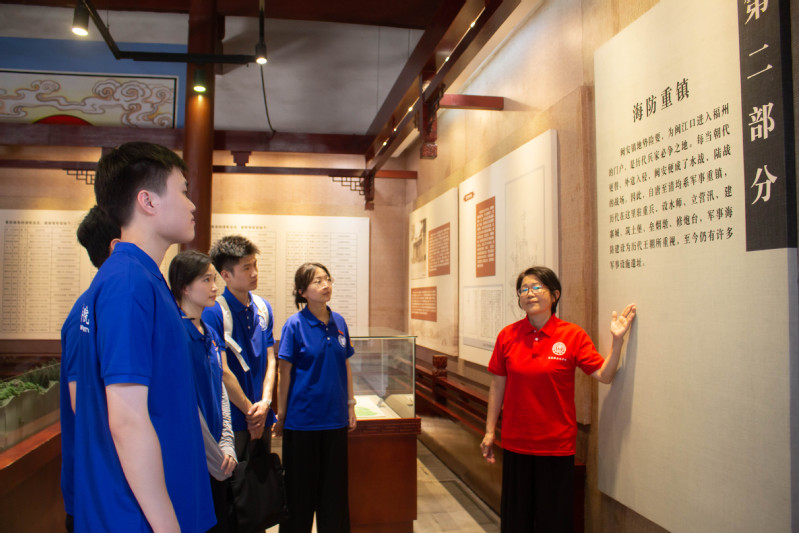 7月8日,实践队走访中国船政文化城核心区,参观绘事院、铁胁厂、第一架水上飞机“甲型一号”模型、中国船政文化博物馆、总理船政衙门及船政学堂等地,开展调研学习。从船政的创设到海军建设、船政教育及船政文化的发展,队员们全面学习了从1866年船政创设至今向海图强的奋斗历程,并通过问卷调查和游客访谈,探讨船政文化的传承与创新路径。