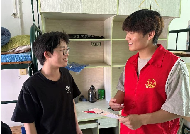 正值迎新季,学生党员们带着热情与责任走进对接新生宿舍,与新生们促膝长谈,细致了解他们在思想动态、学业规划、生活适应及心理状态等方面的困惑与需求。同时,结合自身经历向新生讲解党的基本理论、发展历程及入党流程,鼓励新生树立远大理想,主动向党组织靠拢,以党员标准严格要求自己。