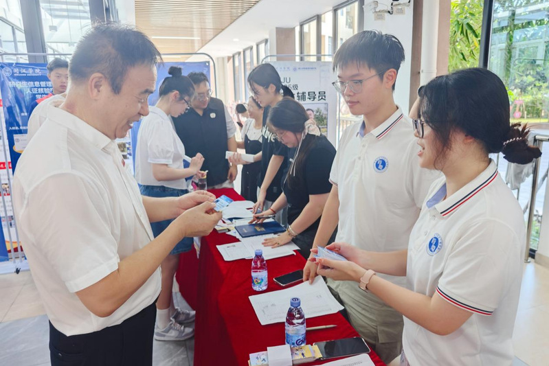 新生报到大本营秩序井然,舒继武校长和学院领导来到本、硕新生报到点,与现场师生、新生及家长亲切交流,详细询问迎新工作推进情况与新生报到流程是否顺畅,为迎新工作注入温暖力量。