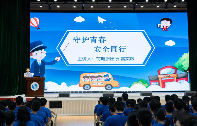反诈宣传教育由荷塘派出所雷实煜警官主讲,他针对大学生群体高发的兼职诈骗、游戏诈骗、冒充亲友诈骗等电信网络诈骗形式,通过典型案例剖析诈骗手法和受骗心理,提醒新生时刻保持警惕,切实守护好个人财产与信息安全。
