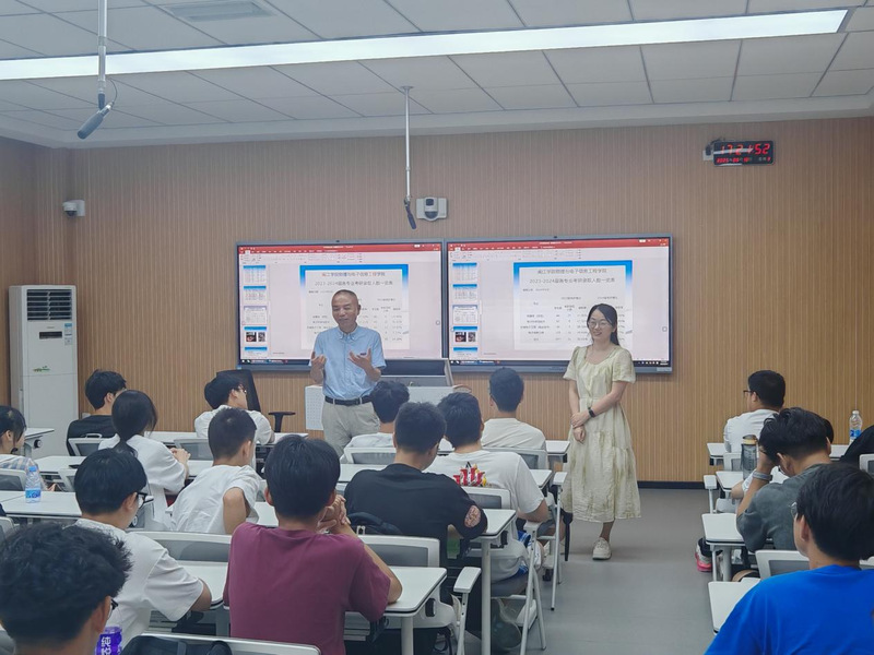 班主任们从学院学科发展历程、师资力量、课程体系设置、实验室资源等方面展开详细介绍,同时,班主任们还结合案例进行讲解,帮助新生打破“专业陌生感”,建立对所学领域的兴趣与认同。在职业规划指导环节,班主任们结合自身教学经验与行业调研数据,分析了物电学院相关专业的就业方向、岗位能力需求及升学路径(如考研方向选择、院校报考建议、出国留学规划等)。在互动环节,针对新生普遍存在的“如何平衡学习与实践”“大学期间需考取哪些专业证书”“跨专业发展可能性”等疑问,班主任们逐一耐心解答,并引导新生结合自身兴趣、性格与能力,尝试制定初步的大学四年学习计划与短期目标。