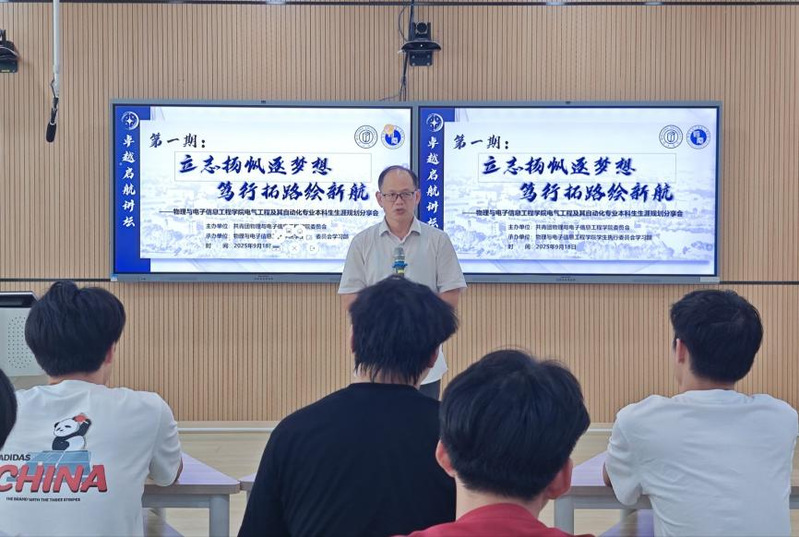 为推动生涯教育前置化、精准化,帮助本科生在不同年级阶段明确学业方向、规划发展路径,物电学院于9月10日、18日按班级举办首期“卓越启航讲坛”——“立志扬帆逐梦想,笃行拓路绘新航”暨电气工程及其自动化专业生涯规划分享会。活动由学院学生会学习部精心策划,特邀电气工程及其自动化系邵振华副教授和系副主任张祖昌主讲,辅导员白洁玉与2024级电气工程及其自动化专业110余名本科生到场聆听。