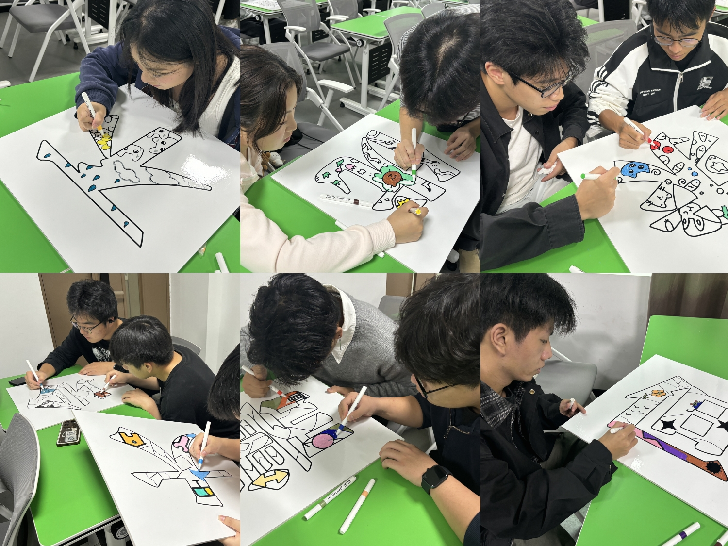 活动现场,涂色环节成为了全场的亮点。团支部精心准备了巨幅手卡和画笔,印有习近平总书记提出的办学理念:“不求最大,但求最优,但求适应社会需要”。同学们围坐一圈,挥毫涂色:深蓝色象征着“最优”的沉稳,橙红色代表着“适应社会需要”的热忱,翠绿色勾勒出“不求最大”的坚守。每一笔每一画,都是对这一理念的深刻体悟和生动表达。