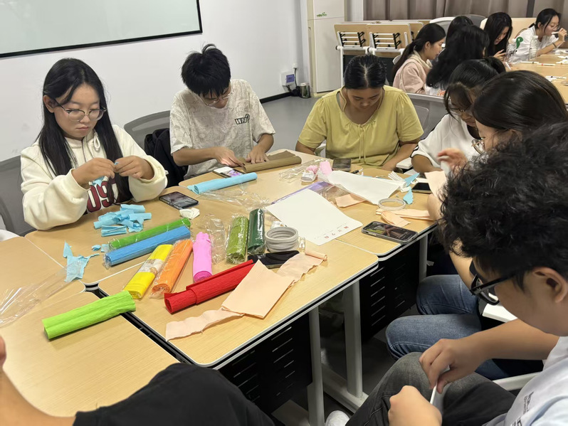 手工的乐趣不仅在作品,更在过程。活动中,两个团支部的同学们围坐交流、互相启发,在绘画与折纸的分享中增进了友谊。心理辅导站的参与,使活动更具“疗愈”温度——专注创作的过程,成为放松心绪的途径,创意作品也成为情绪的载体。