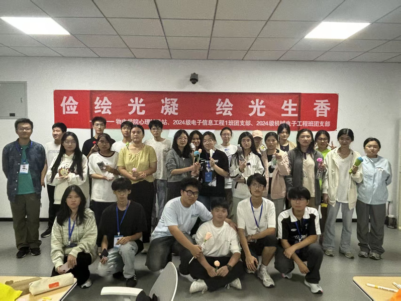 当勤俭节约的传统美德遇上青年学子的奇思妙想,当废旧材料邂逅创意手工的魔法,会碰撞出怎样的火花?11月1日,物电学院2024级机械电子工程班团支部牵头,联合2024级电子信息工程1班团支部、院学生服务中心心理辅导站,开展以“俭绘光凝,绘光生香”为主题的废物利用创意手工团日活动。活动以废物利用为载体,将绿色理念与艺术创作融合,让“节约”在巧思与创意中焕发青春之光。活动特邀辅导员白洁玉参加,共吸引近60名同学热情参与。