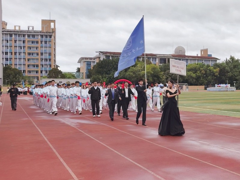 “物电荣光,逐梦八方;驰骋赛场,再创辉煌!”开幕式上,物电方阵的铮铮誓言响彻云霄。在学院领导的带领下,学子们步伐铿锵、气势如虹,高举院旗,引领全体物电人的信念与荣光。