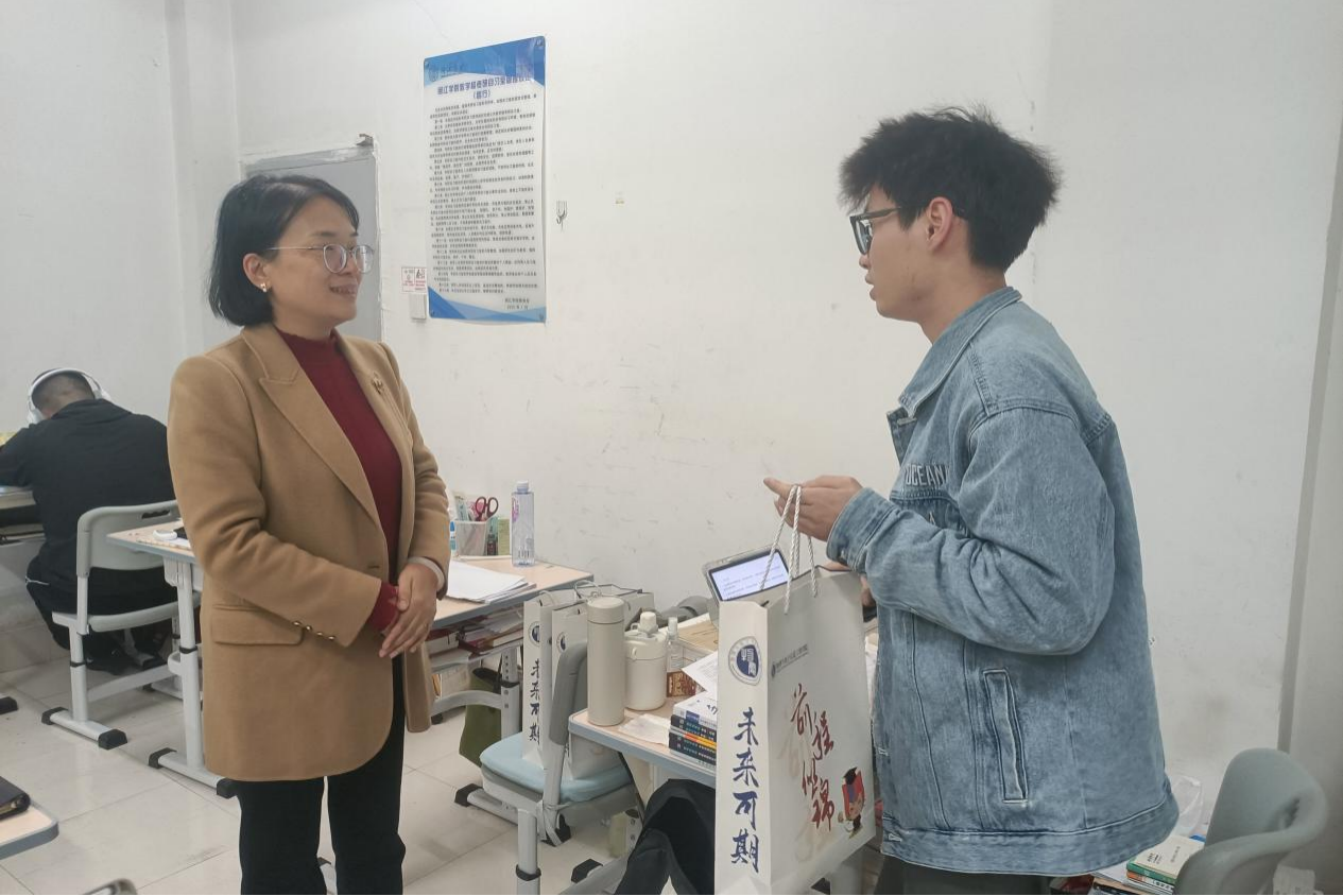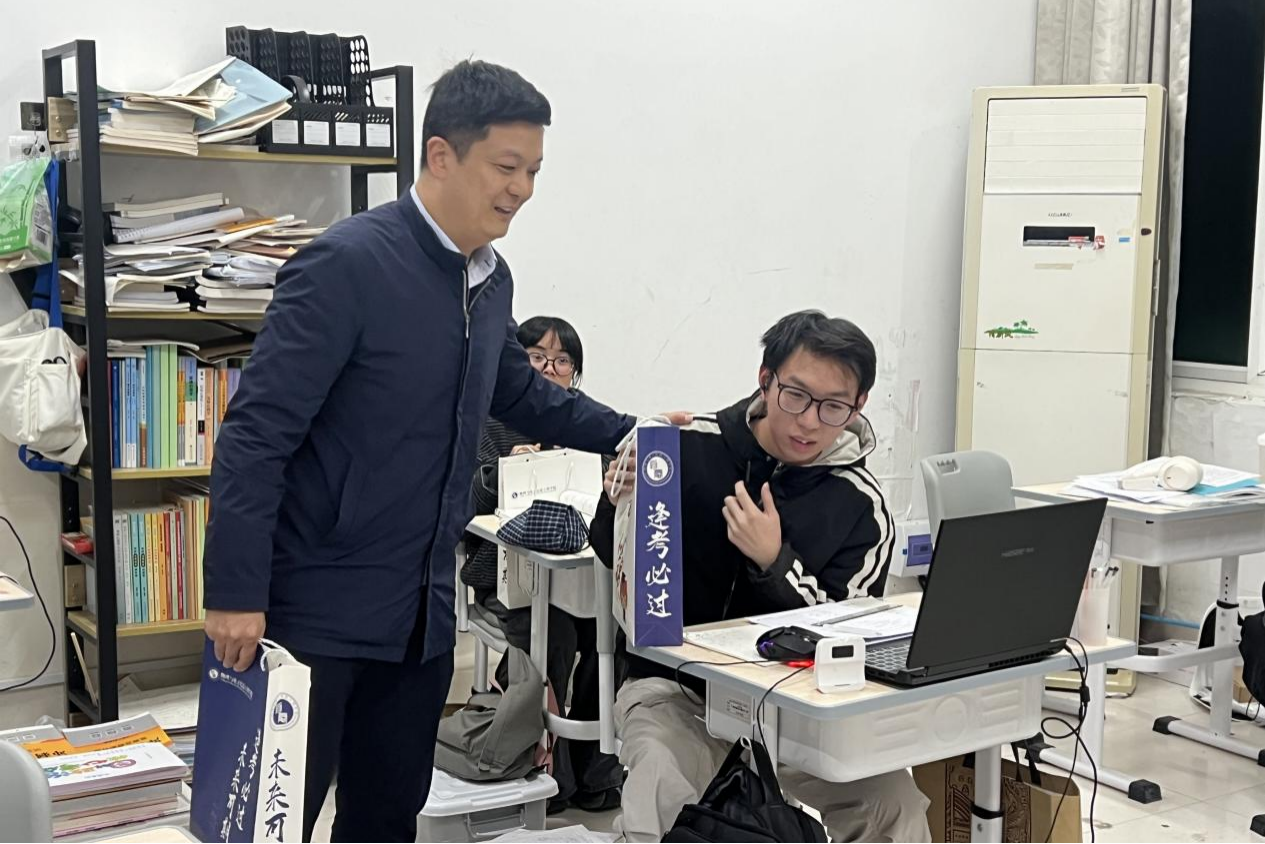 随着考公、考国家电网、考研等关键考试的临近,为缓解物电学子的备考压力,传递学院温暖关怀,近日,物电学院为紧张备考的学子们准备了“逢考必过”考试加油包,学院党委书记洪晓林、院长刘中、副书记张林雯、副院长刘志群和毕业班辅导员一起看望慰问备考学子,为大家鼓劲加油。