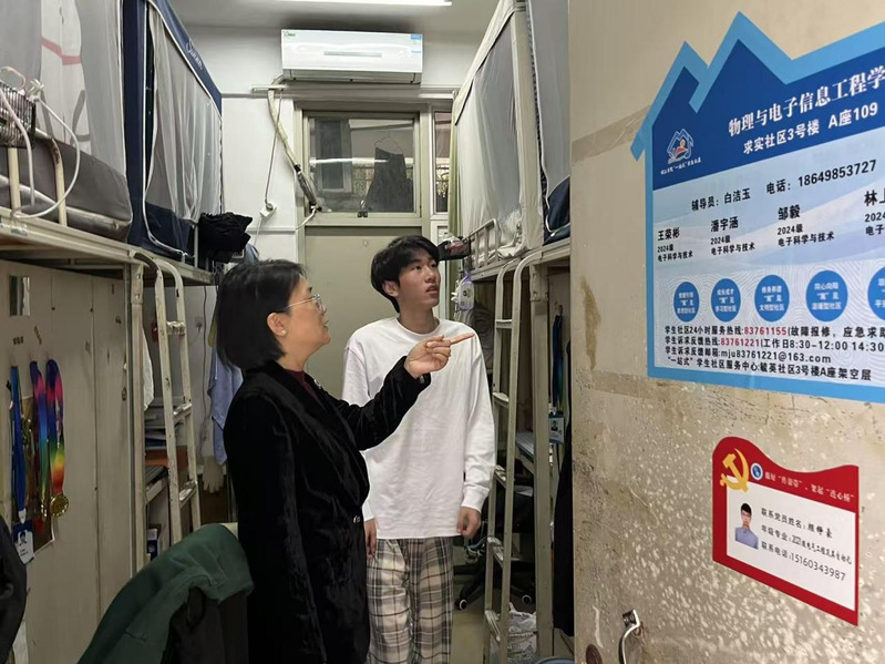 学院党委副书记张林雯和全体辅导员首先进行了宿舍抽查。对卫生整洁、布置规范的宿舍给予肯定和表扬,对存在卫生死角、物品杂乱或存在安全隐患的宿舍当场提出整改要求。针对冬季防火、用电安全等关键问题,老师们反复叮嘱同学们要提高安全防范意识,自觉遵守宿舍安全管理规定,共同维护温馨和谐的住宿环境。