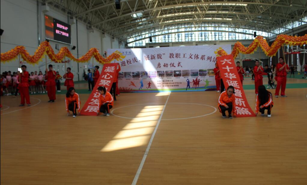 比赛开始前,校工会举行了“迎校庆·展新貌”教职工文体系列活动启动仪式。电子系的舞龙表演尽显风采,为活动助兴。