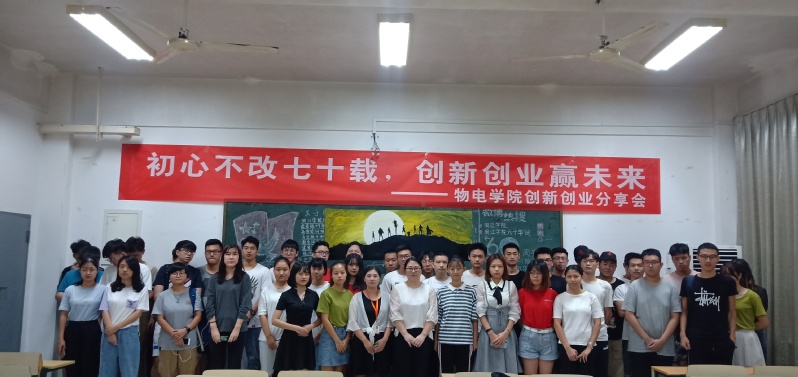 为庆祝中华人民共和国成立70周年,总结物电学院创新创业成果,营造创新创业氛围,传递创新创业精神,交流创新创业经验,探讨创新创业新发展、新动向。10月10日,物电学院在教学楼召开了“初心不改七十载,创新创业赢未来”主题分享会,本次会议邀请了福州市传一卓跃智能科技有限公司的就业经理张璐芳分享创业经历和经验。