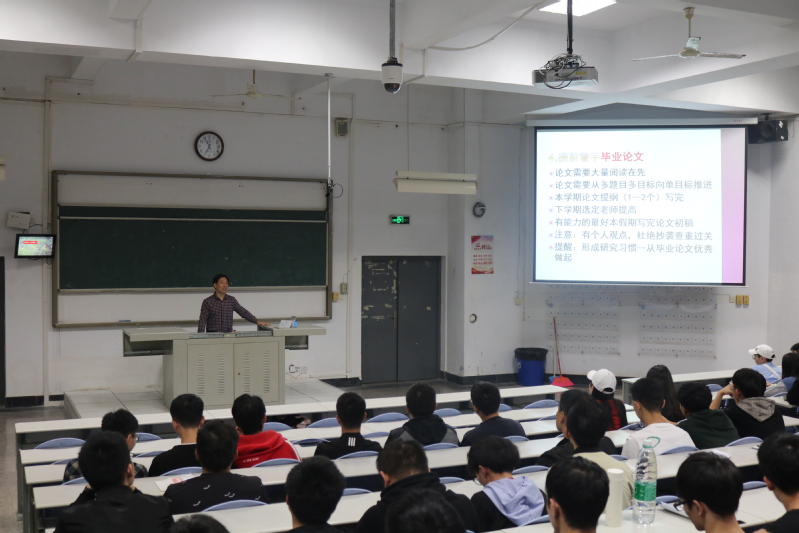 为帮助2016级毕业班学生认识当前形势与政策,树立正确的就业意识,11月19日和21日,物电学院在教学楼开展毕业班形势与政策专题课,课程由物电学院党委书记李超主讲,学院2016级全体学生参加了课程。