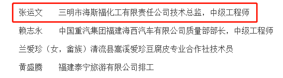 物电学院2008届物理学专业毕业生、三明海斯福技术总监张运文拟授全国劳动模范称号。