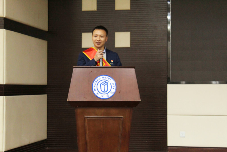 张运文校友介绍了他的事业发展情况,从技术员到技术总监的成长历程中,他立足专业、沉心科技创新,主持开发的一系列高端氟精细化学品填补了国内市场的空白,为推动我国氟新材料产业的发展起到重要支撑作用,2019年他带领的海斯福公司研发部氟醚项目组荣获全国“工人先锋号”称号。他以自己的就业成长历程为例,强调同学们要正确对待毕业求职中遇到的挫折,摆正心态,要响应习近平总书记提出的年轻人要“自找苦吃”、要下基层,为老百姓做事的倡议,争做新时代的一颗螺丝钉。