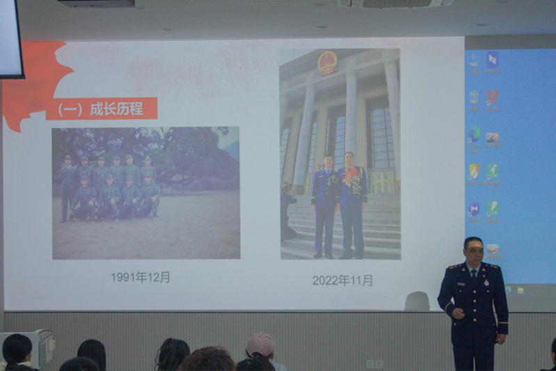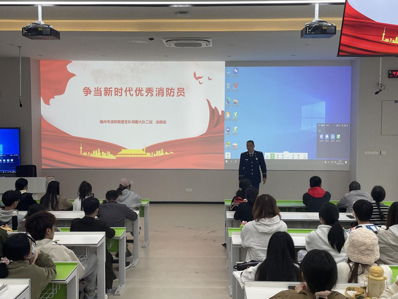 全国消防安全宣传月期间,为弘扬劳模精神,做新时代奋斗者。为深入学习贯彻党的二十大精神,结合主题教育,大力弘扬劳模精神,坚定入党信念,11月15日下午,物电学院特邀十九大党代表、一级消防长、福建消防“兵王”涂颜焱做劳模讲座,开展主题教育活动。学院全体教职工、入党积极分子培训班和“核聚变”学生干部成长训练营全体学员聆听了讲座。学院党委副书记张林雯主持活动。
