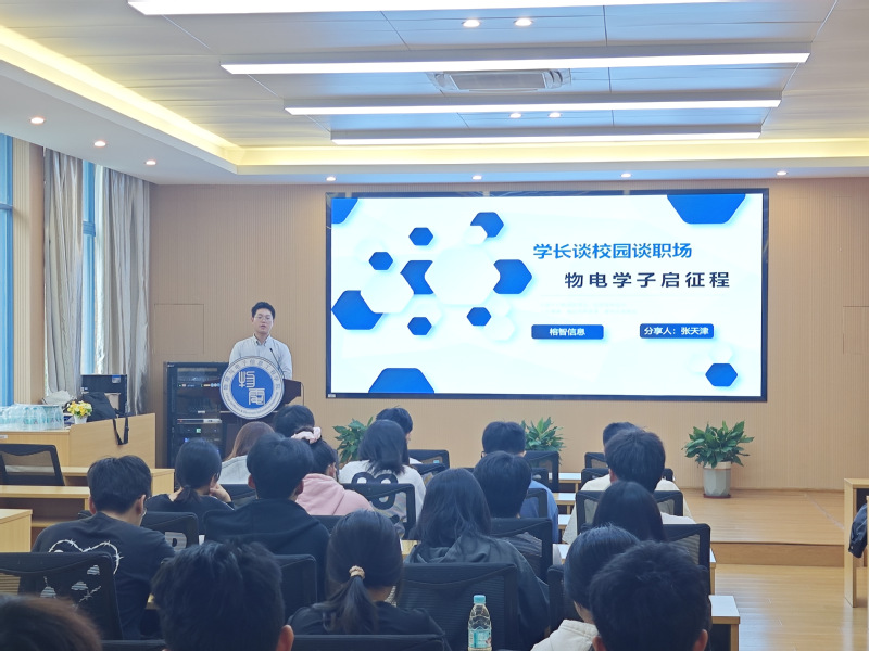 10月28日,为庆祝建校66周年,物电学院成功举办了一场别开生面的校友讲坛。此次活动邀请了2021届电子信息科学与技术专业校友,现任福州市榕智信息科技有限公司总经理助理的张天津作为主讲嘉宾。他以自身的成长经历为蓝本,为物电在校学子们带来了一场深刻的精神洗礼和思想启迪。