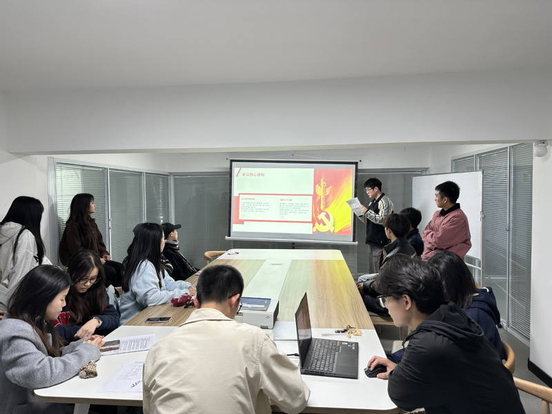 为进一步提升党员理论素养和政治觉悟,3月21日晚,学生第三党支部在求实社区3号楼物电学院研习室开展全体党员理论学习活动,党支部书记、辅导员姚嘉杰主持会议。