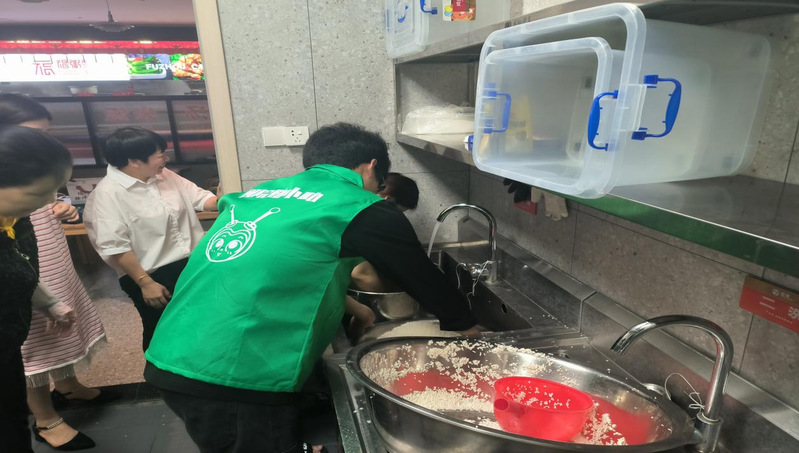 活动伊始,同学们便撸起袖子投入到紧张而有序的准备工作中。大家分工协作,有的仔细清洗糯米,有的认真摆放花生等馅料,还有的细心挑选新鲜的粽叶,每一个环节都一丝不苟,确保食材的干净卫生与粽叶的品质。看着整齐码放的食材,大家对接下来的活动充满期待。