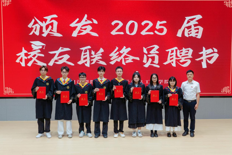 洪晓林书记向2025届校友联络员代表颁发聘书,期待毕业生成为母校与社会联结的温暖纽带。