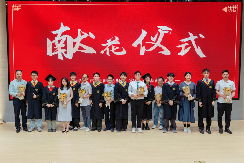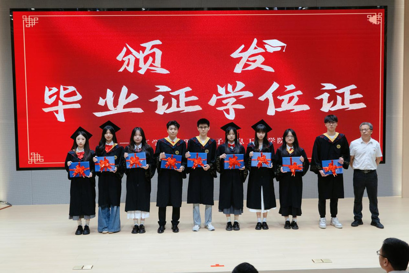 刘志群副院长宣读2025届毕业生与学位授予名单,周赢武副院长为毕业生代表颁发毕业证书和学位证书。