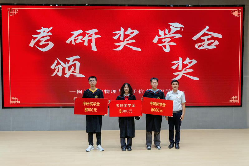 物电学院2025届毕业生考研再创佳绩,共有56名毕业生荣获考研奖学金,学院党委书记洪晓林为考研奖学金获奖代表颁奖,勉励受表彰的同学再接再厉,严谨求学,刻苦钻研,奋发成才。