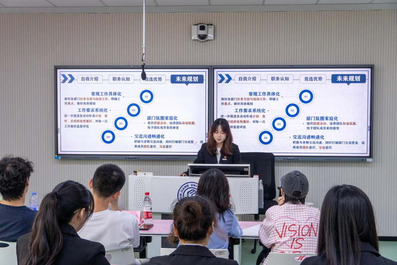竞选结束后,指导老师上台总结发言,高度肯定同学们的精彩表现,也向即将卸任的学生干部致以衷心感谢。老师们鼓励学生干部们要以此次换届为新的起点,在今后的工作中,始终牢记服务同学的宗旨,以更加饱满的热情、更加严谨的态度投入到团学工作中,努力将各部门打造成为更具凝聚力和战斗力的团队,为学校和学院的发展和同学们的成长贡献力量。
