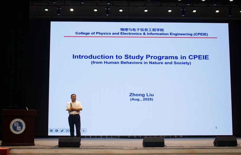 英文PPT、双语授课,刘中院长的“开学第一课”,令新生们印象深刻。他聚焦学院名称“物理与电子信息工程”展开深度解读,从学科发展脉络与办学定位出发,阐释名称的由来与内涵,帮助学子们精准把握学院学科特色。同时,他讲解学院未来发展规划,为学子们的专业学习与职业规划提供清晰指引,让大家在了解学院发展蓝图的过程中,更加热爱所学专业。