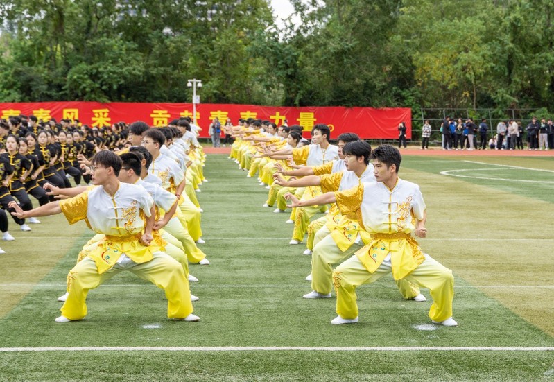 绿茵场上,武术团队员的国风表演惊艳四座。南拳的刚劲迅猛与太极的行云流水完美相融,拳脚生风间尽显豪迈气概,推手转合中蕴含东方智慧,赢得满场喝彩。