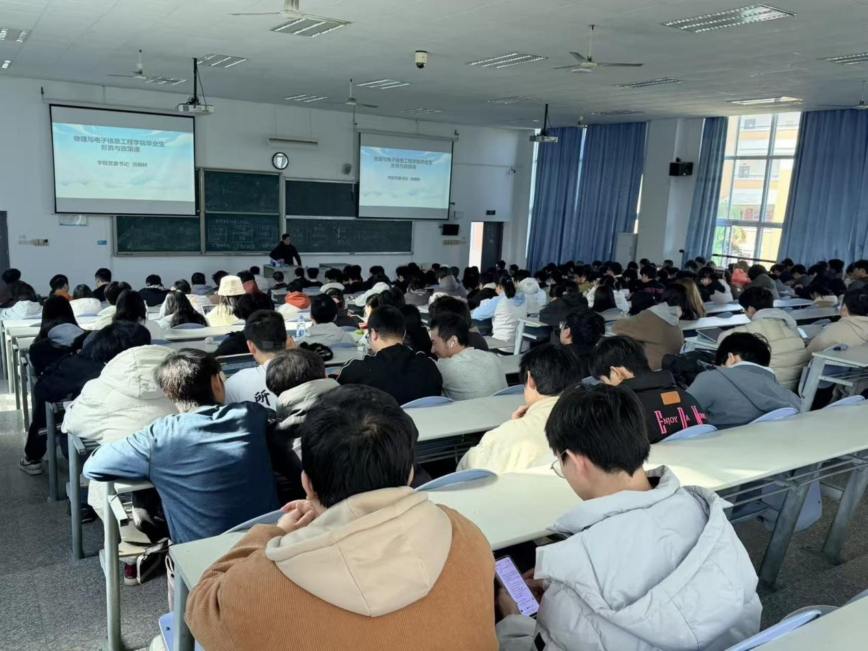12月15日下午,物电学院党委书记洪晓林以“决胜十四五 奋发向前行”为主题,面向2026届毕业生开展了形势与政策课。